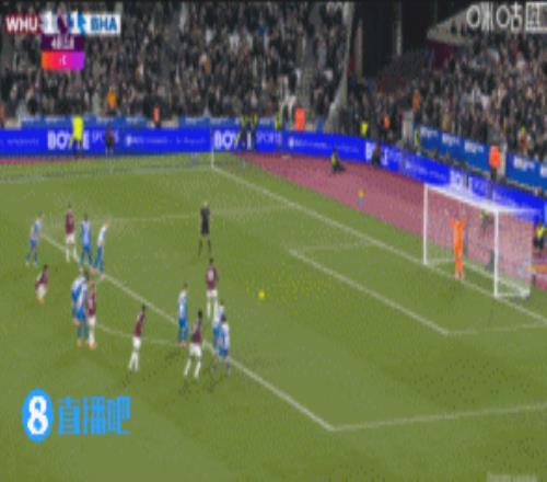 下半场补时5分钟,西汉姆2-2布莱顿。