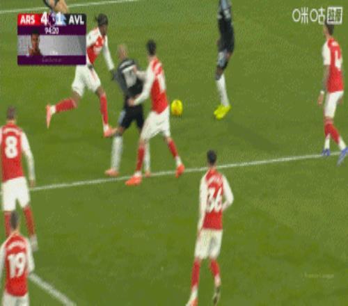 下半场补时8分钟。最终全场比赛结束,阿森纳4-1维拉。