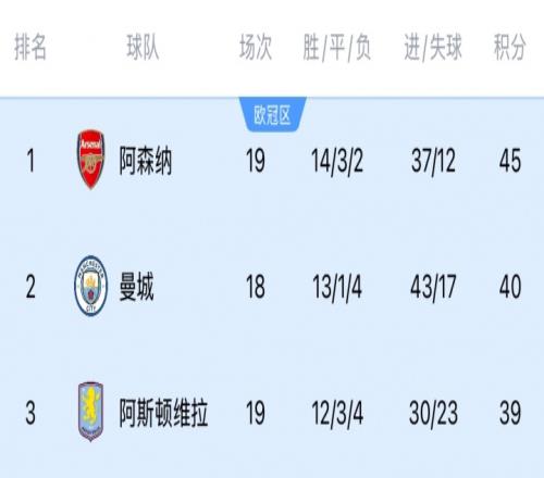 体育播报12月31日宣 英超第19轮阿森纳4-1大胜维拉,半程过后,枪手45分领跑英超积分榜。