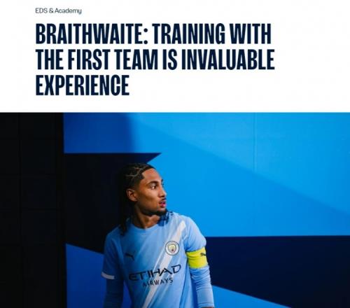 体育播报1月1日宣 近日,曼城U18队长凯登·布雷斯韦特接受了俱乐部官媒的采访,他谈到了与一线队一同训练的宝贵经历。