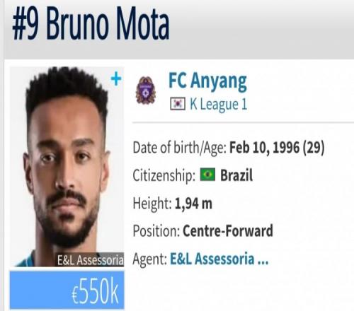 博主:K联赛中锋布鲁诺莫塔正在完善加盟申花的相关手续