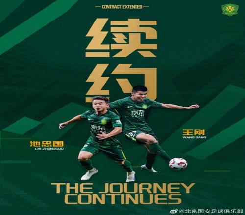 官方:北京国安与36岁老将王刚、池忠国续约