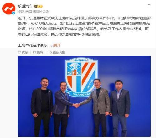 乐道汽车成为上海申花足球俱乐部官方合作伙伴