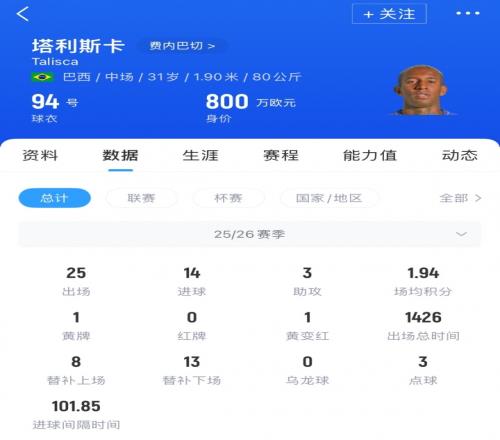 报道称,塔利斯卡目前年薪高达1200万欧元,费内巴切高层已经向他提出了一份500万欧元基础年薪,外加奖金的报价。尽管降薪幅度达到50%,塔利斯卡仍对这一金额表示了"同意"。塔利斯卡强调希望留在球队。