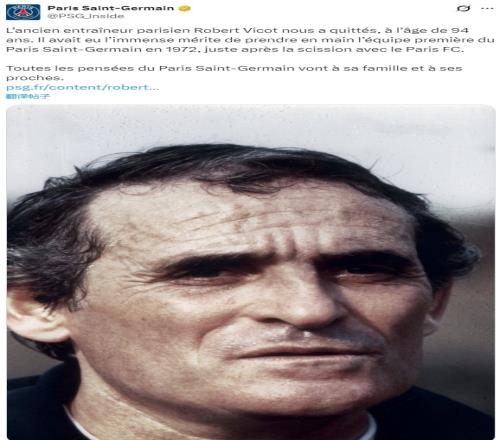 R.I.P.巴黎圣日耳曼前主帅维科特去世,俱乐部官方社媒发文致哀