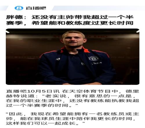 德里赫特曾希望能和教练度过更长时间但滕哈赫+阿莫林均下课
