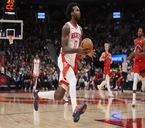 火箭与骑士一战,第三节有两个回合极具代表性:第三节结束前7分45秒,凯文·杜兰特与阿门·汤普森挡拆后助攻阿门...