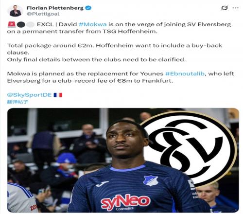 德天空:霍村21岁前锋穆库瓦接近加盟埃弗斯堡,转会费约200万欧
