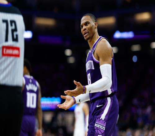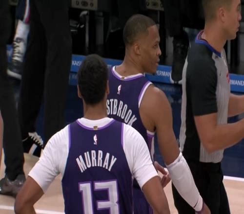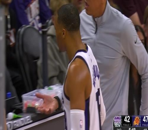 NBA常规赛,国王客场挑战太阳。比赛第四节,国王后卫拉塞尔·威斯布鲁克突破上篮得手,得到本场比赛第17分,个人生...