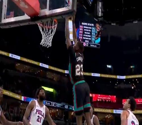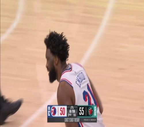 76人半场7272灰熊马克西24分恩比德19+3+411号秀科沃德17+9