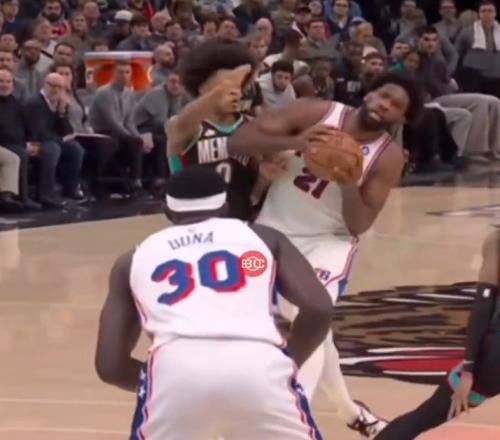 美媒打趣:恩比德一肘一倒,罚球就来了!莫兰特都无奈了