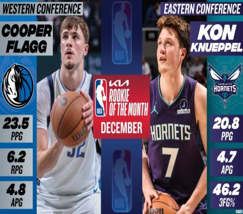 体育播报1月4日宣 此前NBA官方公布了12月东西部月最佳新秀,独行侠状元弗拉格背靠背当选西部月最佳新秀球员。...