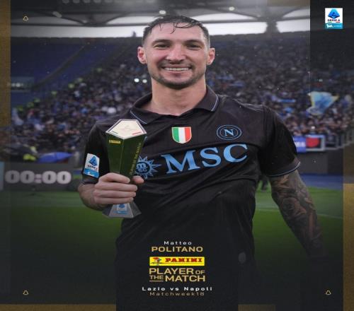 独造2球!意甲官方:波利塔诺当选拉齐奥VS那不勒斯全场最佳球员