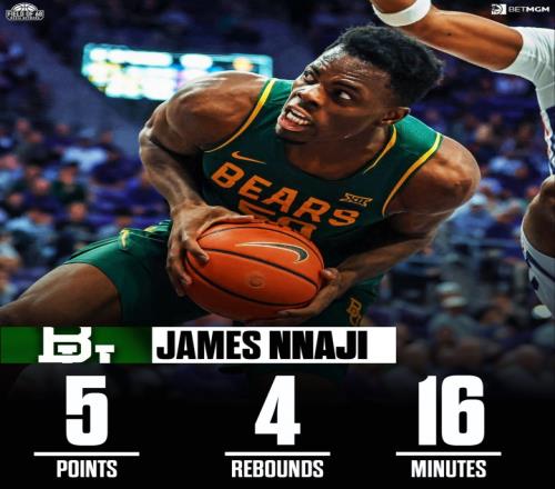 体育播报01月04日宣 NCAA常规赛,贝勒大学在客场以63-69输给得克萨斯克里斯汀大学。此役,贝勒大学新援、中锋詹...