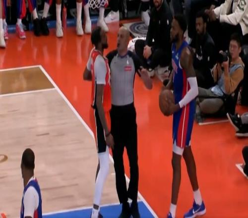 裁判站中间呢!小琼斯突破被保罗里德推下险些冲突被制止