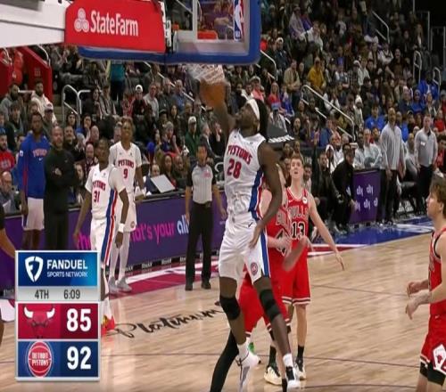 坐稳东部第一!活塞双核缺席大胜公牛斯图尔特31分生涯新高