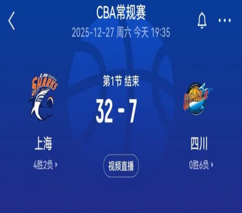 体育播报12月27日宣 CBA常规赛第7轮,四川首节7-32落后上海。首节比赛,四川全队12中1,其中三分5中0,罚球6中5,仅得...
