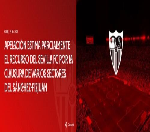 体育播报12月29日宣 塞维利亚官网消息,西班牙足协上诉委员会部分接受了塞维利亚足球俱乐部法律团队的申诉,将...