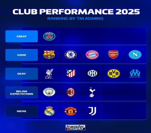 德转锐评豪门2025表现:巴黎夯巴萨拜仁枪手顶级皇马曼联拉完了