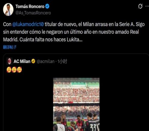 体育播报12月28日宣 在米兰3-0击败维罗纳后,著名皇马球迷龙赛罗更新社交媒体,再次感叹了莫德里奇的表现。龙赛...