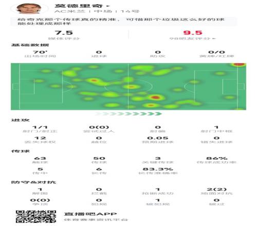 魔笛本场1射1中框3关键传球+6长传5成功2对抗2成功获评7.5分