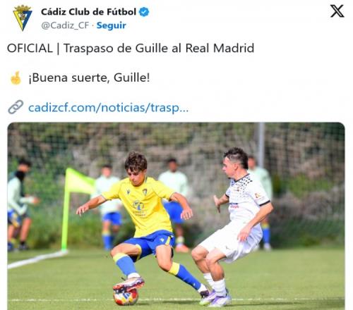 官方:皇马从加的斯签下西班牙U18国脚右后卫吉列冈萨雷斯