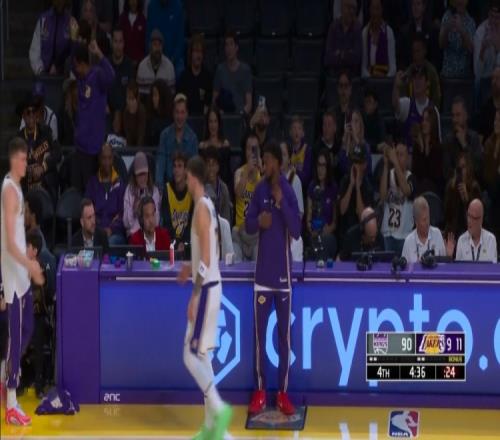 抓住机会展示自己!湖人胜券在握布朗尼末节剩4分36秒被换上场!