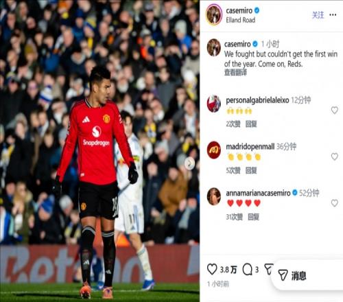体育播报1月5日宣 在曼联客场1-1战平利兹联后,曼联中场卡塞米罗更新了社交媒体。卡塞米罗写道:“我们拼尽了全...