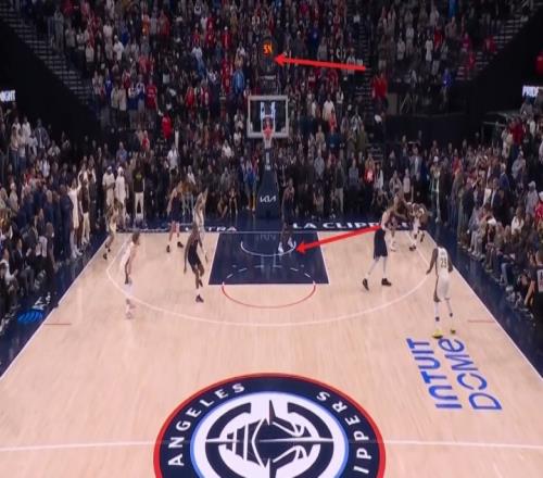 比赛最后6.9秒,小卡从5.6秒就站在三秒区(身旁无防守人),一直站到了最后GIF-快船最后一防 小卡疑似防守三秒违例...