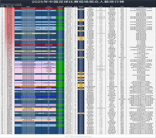 2025年中国足球比赛现场观众人数排行榜(12.31晚修正版)感谢大家的指正,此前发布的版本少统计了两场比赛,补上之...