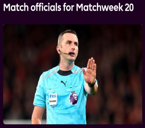 英超第20轮裁判:奥利弗执法曼城vs切尔西