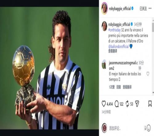 体育播报12月28日宣 意大利足坛名宿巴乔更新社媒动态,回顾32年前的今天赢得金球奖。1993年的今天,效力于尤文...