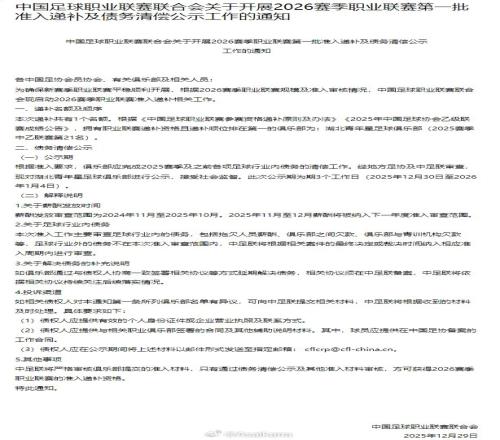 足球报谈职业联赛债务清偿名单:公示之后的审核关也是准入的难关