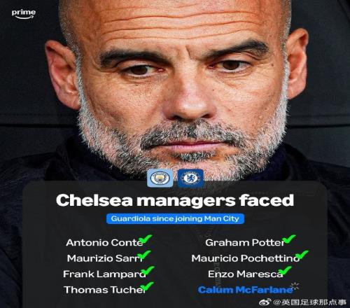 Prime Sport:自2016年执教曼城以来,瓜迪奥拉已经与八位切尔西主帅交过手