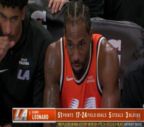 攻防一体!莱昂纳德单场至少50分5断3帽NBA历史第二人&比肩浓眉