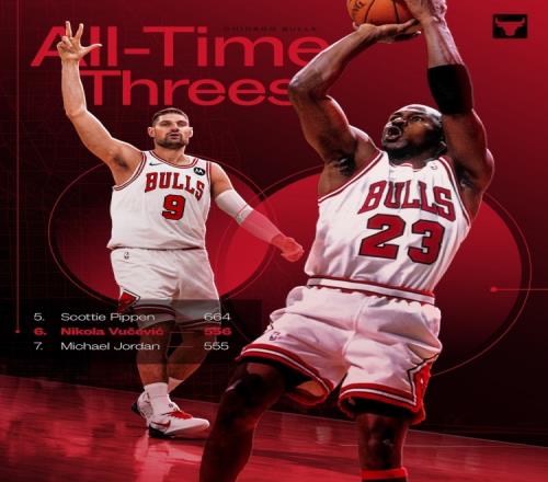 武切维奇公牛生涯556记三分超乔丹独占队史第6!队史第1为拉文