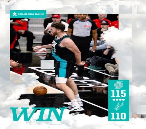 体育播报1月4日宣 NBA常规赛,开拓者115-110力克马刺。赛后,球队发布赢球海报,得分生涯新高的克林根成为封面人...