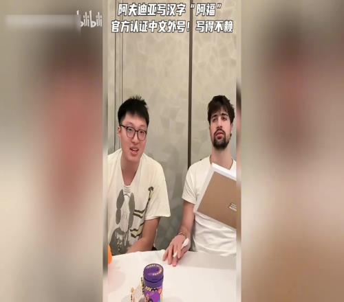 杨瀚森教的阿夫迪亚用中文写自己名字:阿福