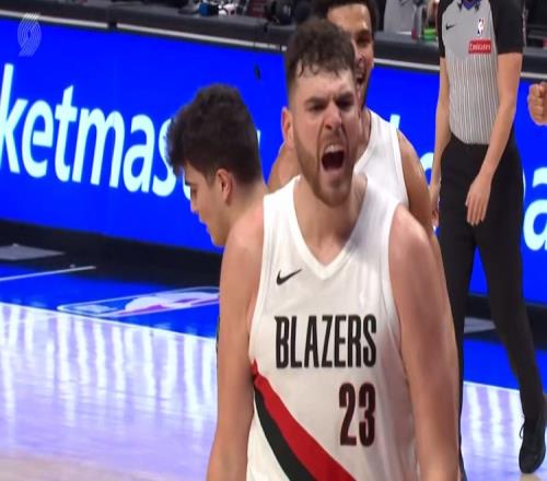 18+18&关键2+1杀死比赛!开拓者赢球海报:封面为克林根怒吼瞬间