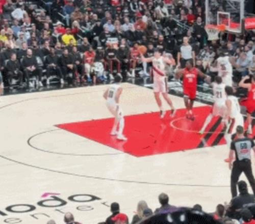 体育播报1月8日宣 今日开拓者对阵火箭,第四节杨瀚森虚晃一枪大力扣篮未中,惹得现场观众一片惊呼,波特兰媒体人G...