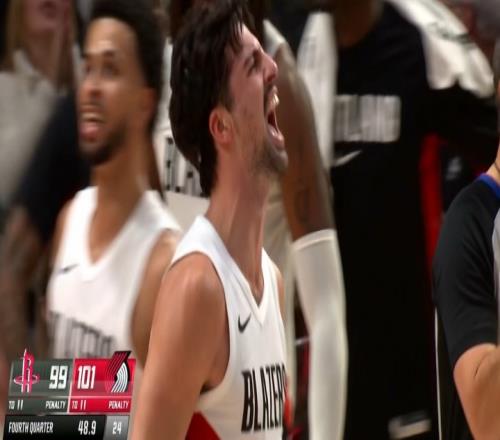 关键球!阿夫迪亚倚着伊森打成2+1开拓者领先7分
