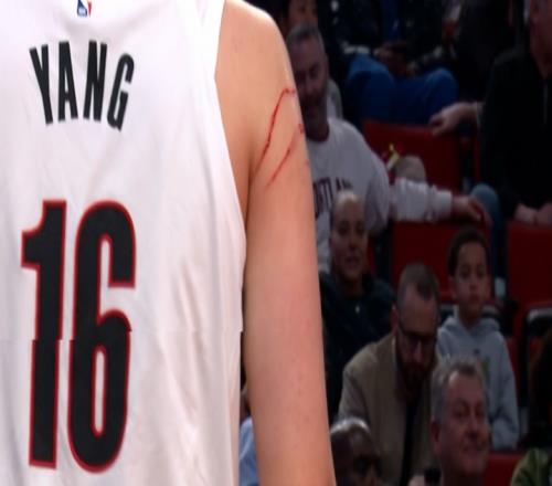 谁干的给我出来!杨瀚森手臂被抓出了多道血痕!