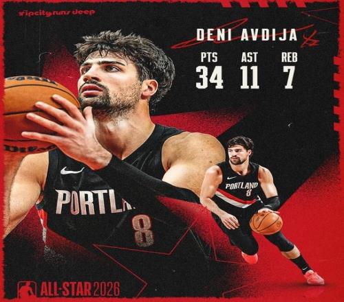 开拓者官推发布阿夫迪亚34+7+11数据海报并为其全明星拉票