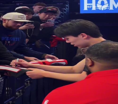 现场观战杨瀚森比赛!山东阿姨手持“好客山东欢迎您”条幅获签名