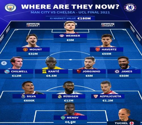 弹指已5年!对比2021欧冠决赛首发:曼城4人在队,蓝军仅剩詹姆斯
