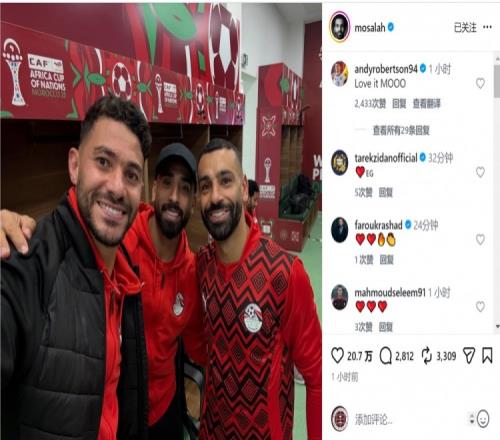萨拉赫社媒晒破门球员合照,庆祝埃及晋级非洲杯8强